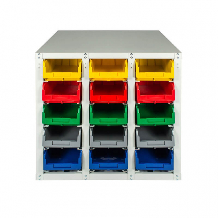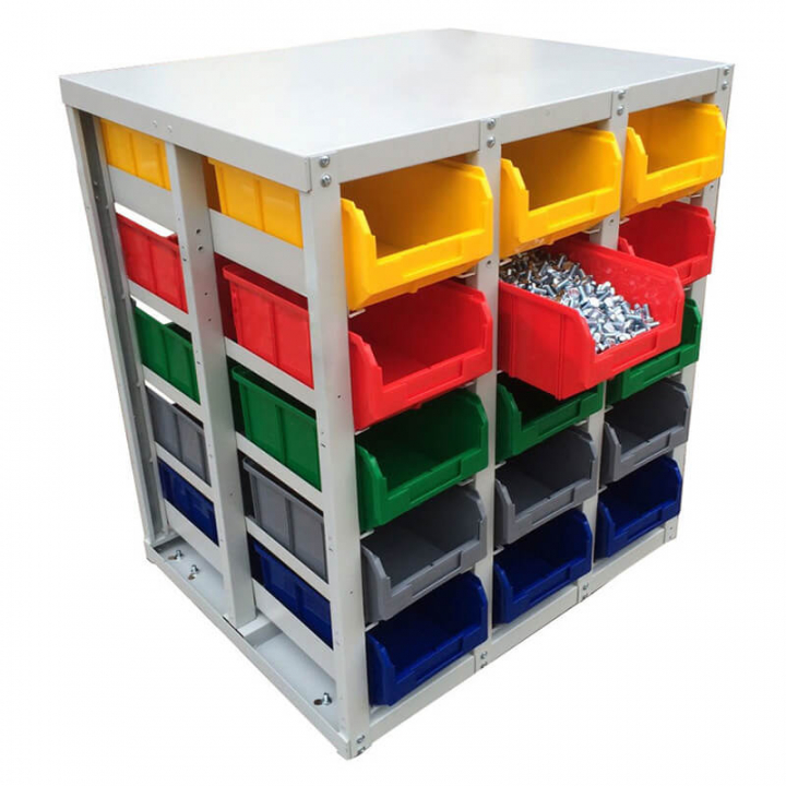 Серый (стеллаж), цветной (ящики)